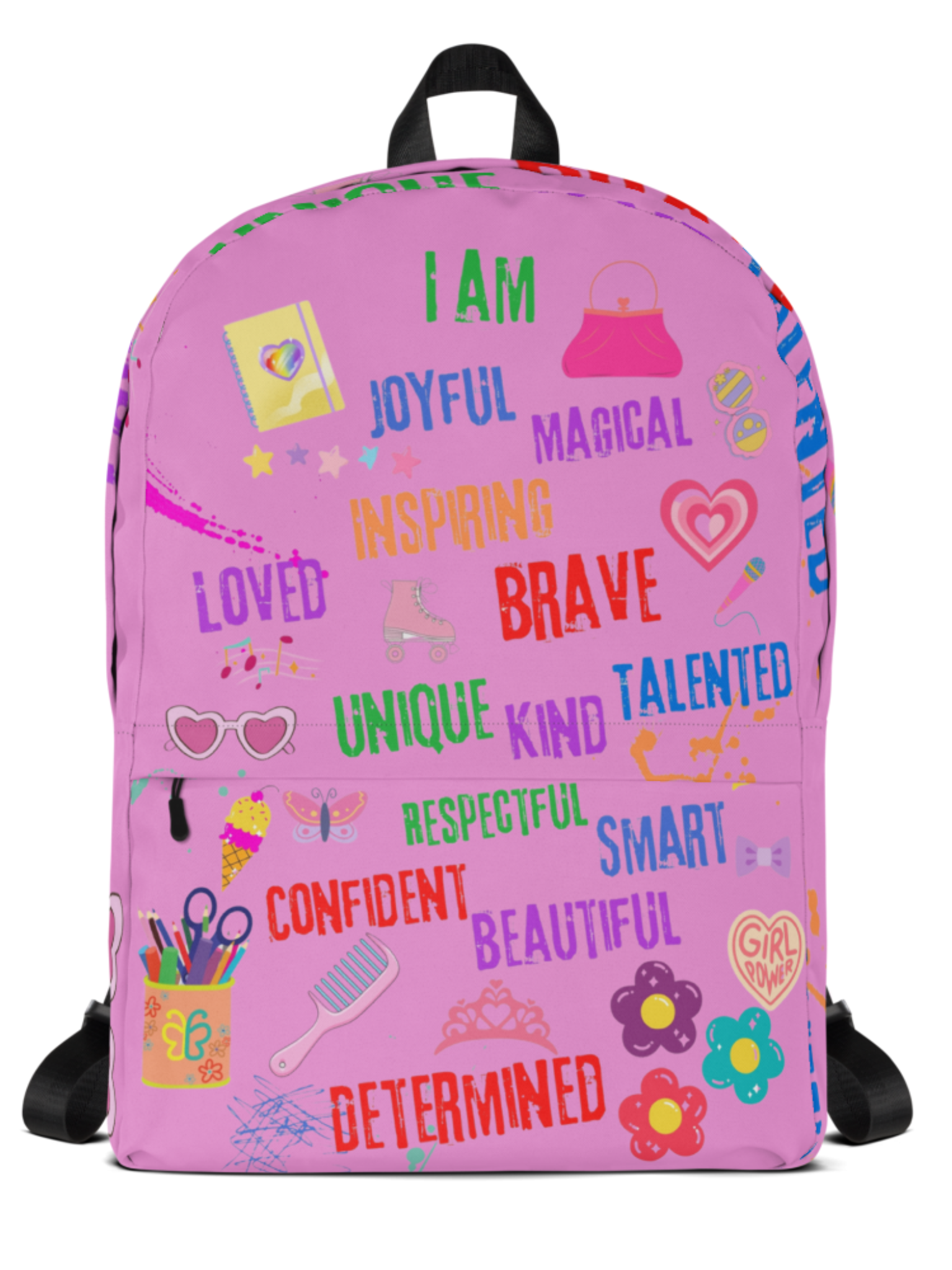 This medium size Girls are Magical backpack is just what you need for daily use or various activities! The pockets (including one for your laptop) give plenty of room for all your necessities, while the water-resistant material will protect them from the weather.